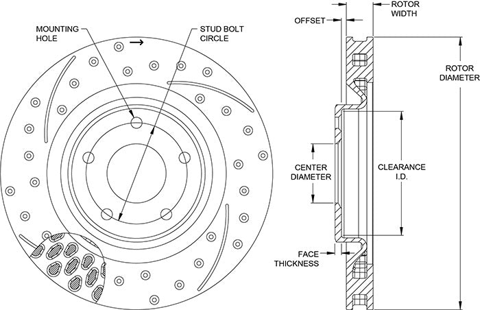 160-14043-BK - Wilwood SRP Rotor & Hat - 325x32mm Slotted_Drilled_curved Left