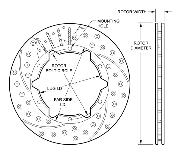 160-7097-BK - Wilwood SRP Rotors - 273x20mm Curved Slotted & Cross Drilled Right